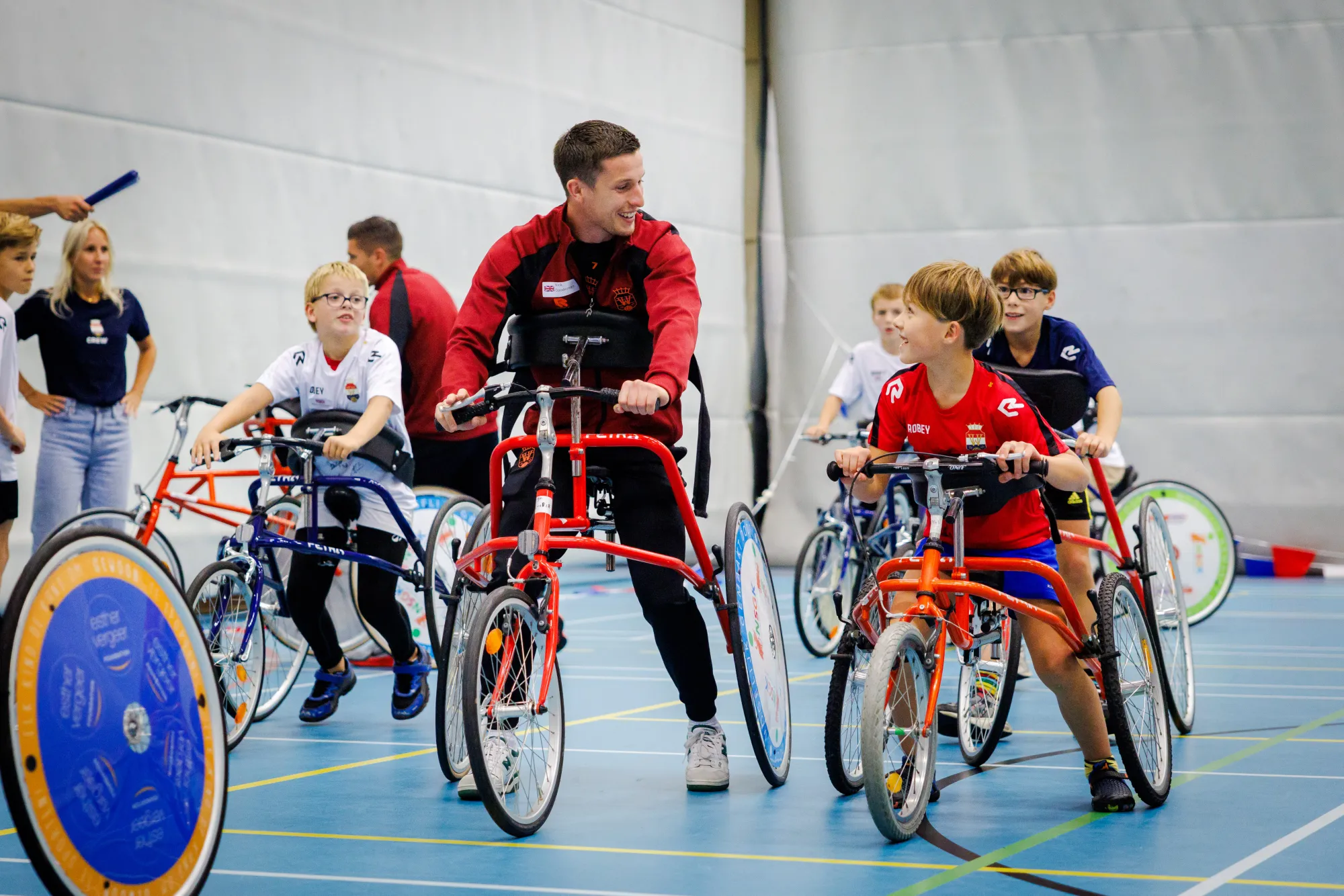 Daarbij viel op dat ook de spelers volop genoten van de middag. De kinderen waren ingedeeld in zes landen, waarbij telkens twee spelers de leiding namen. Samen werkten ze een reeks activiteiten af: dansen, curling, rolstoelhockey, voetbal, framevoetbal en frame runnen. Iedere activiteit werd begeleid door een regionale vereniging die deze sport beoefent.