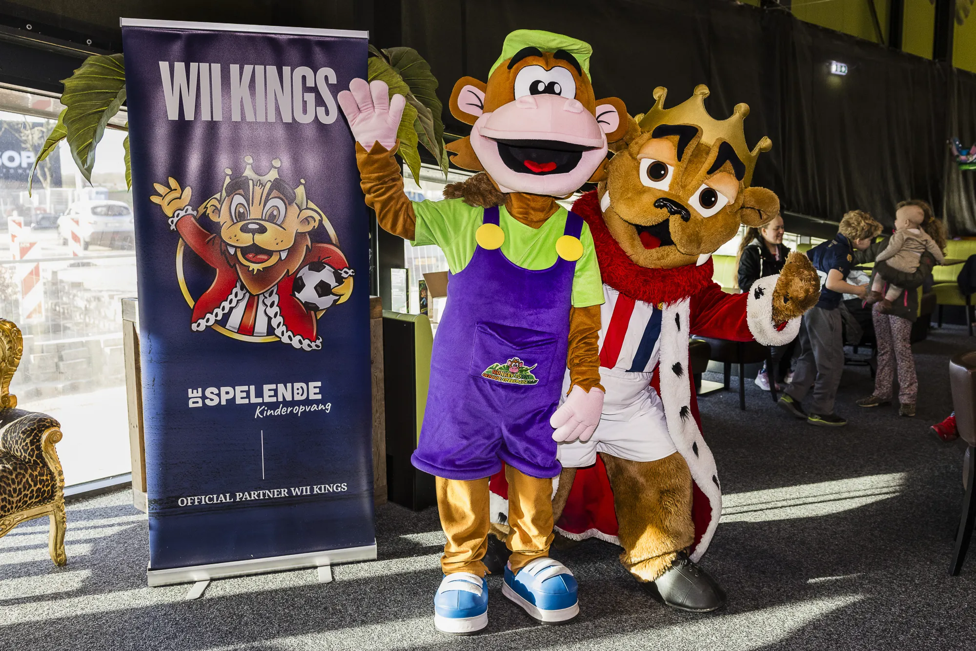 Na een centrale opening volgde een gezamenlijke groepsfoto met de mascotte van Monkey Town Tilburg, Oehlie, en uiteraard Kingo. Vervolgens konden de kinderen het speelparadijs in om te klimmen, klauteren en spelen onder toeziend oog van de mascottes.